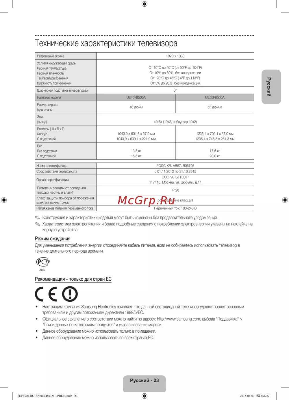 Samsung UE55F8500AT [23/24] Русский