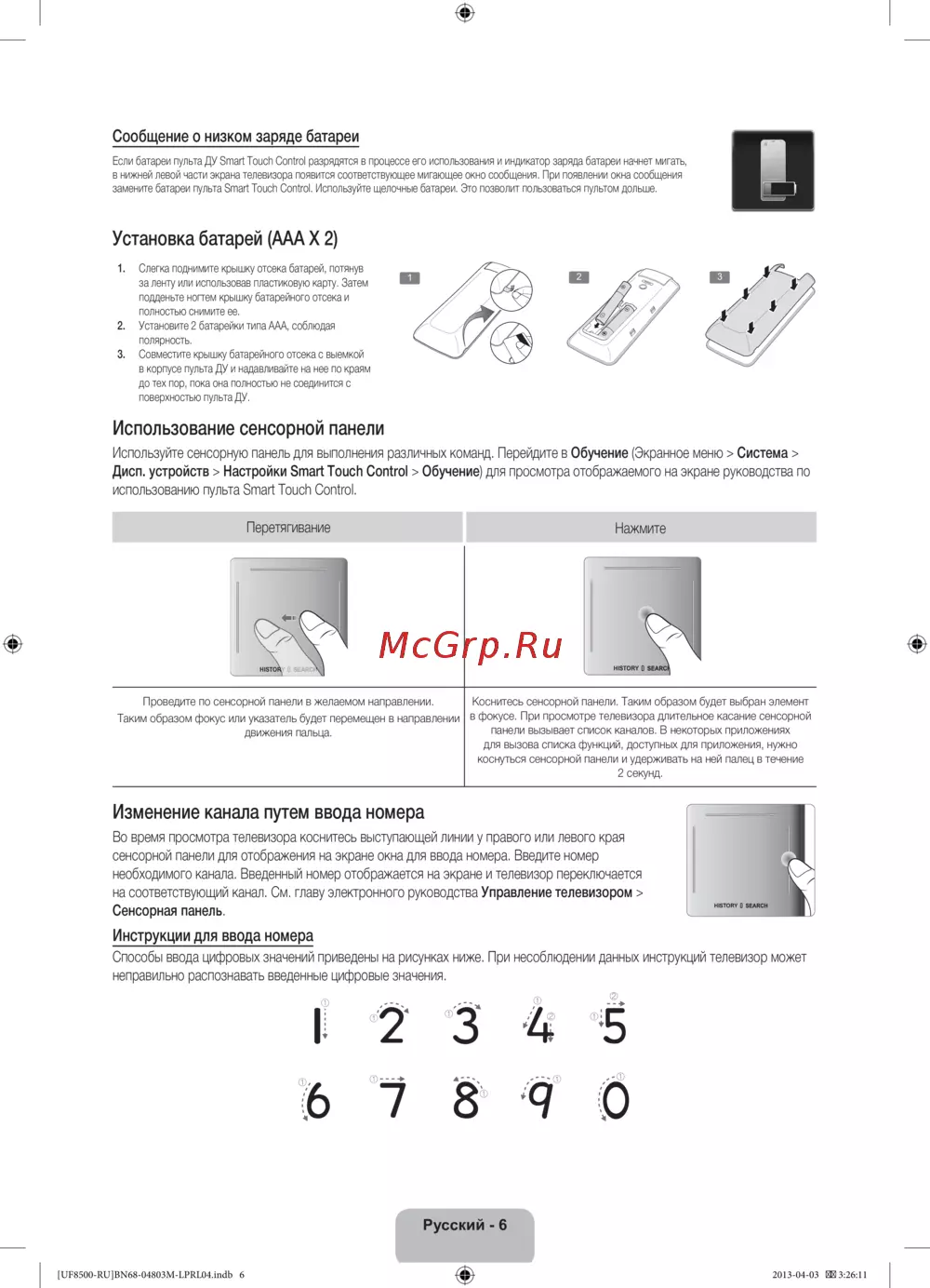замените батареи пульта Smart Touch Control. Используйте щелочные батареи. Это позволит пользоваться пультом дольше.