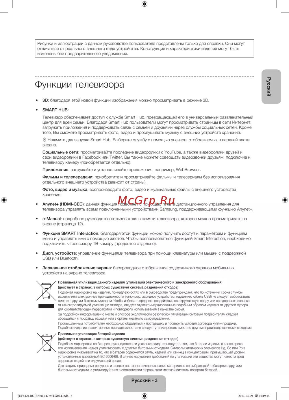 Узнайте о функциях и возможностях современных телевизоров, включая 3D, Smart Hub и управление жестами. Получите советы по утилизации и использованию устройства.