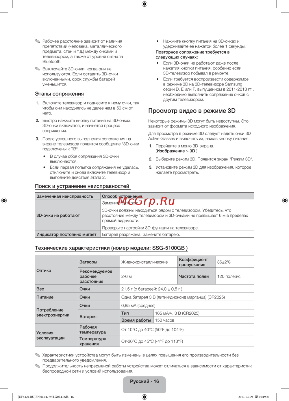 Samsung UE50F6800AB — инструкция по использованию 3D-очков для телевизоров [40/97]