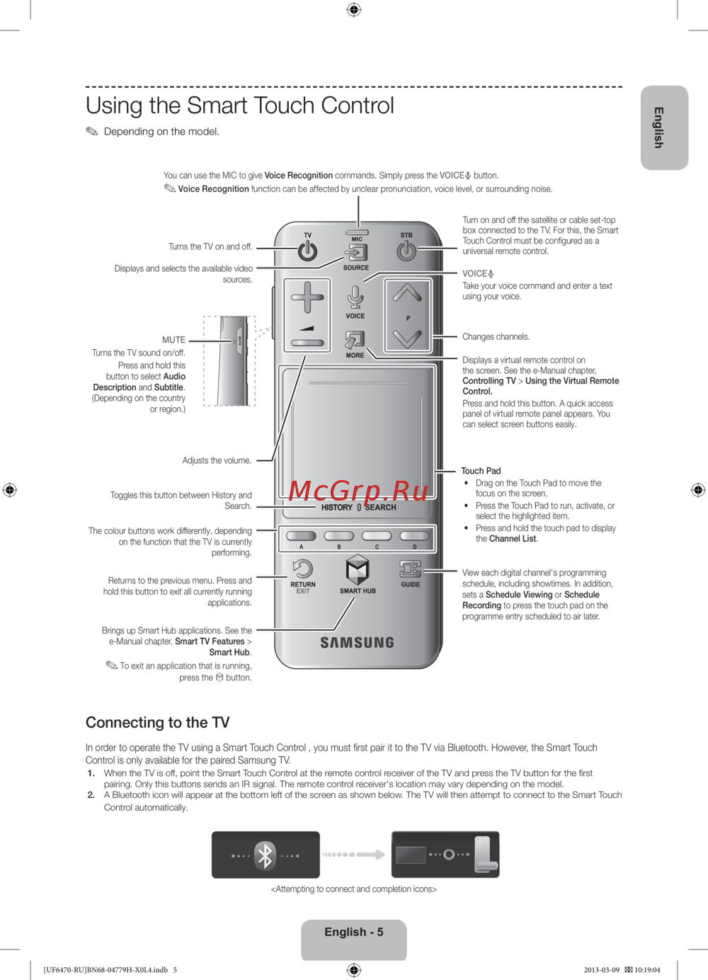 In order to operate the TV using a Smart Touch Control , you must fi rst pair it to the TV via Bluetooth. However, the Smart Touch