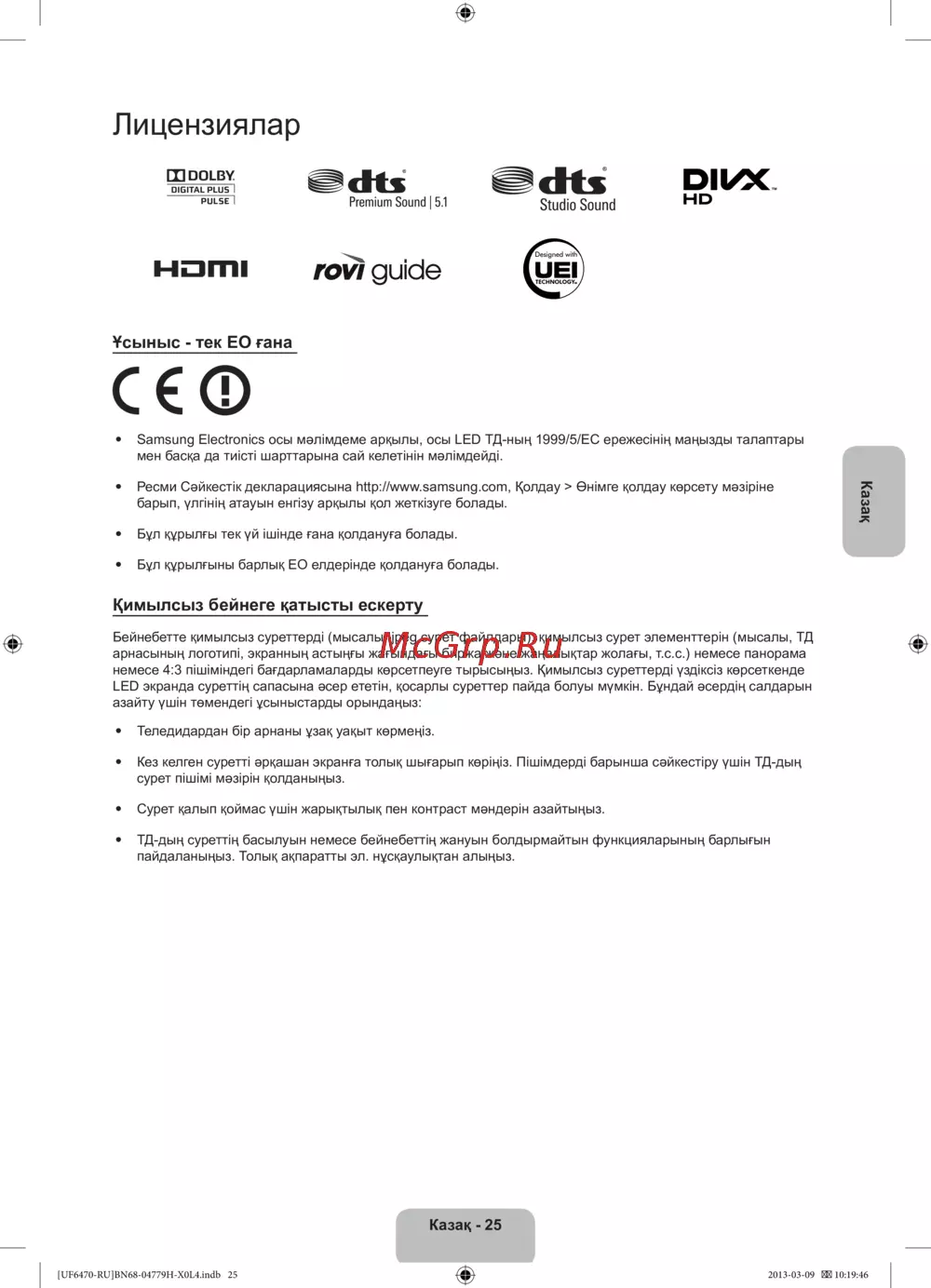 • Samsung Electronics осы мәлімдеме арқылы, осы LED ТД-ның 1999/5/EC ережесінің маңызды талаптары