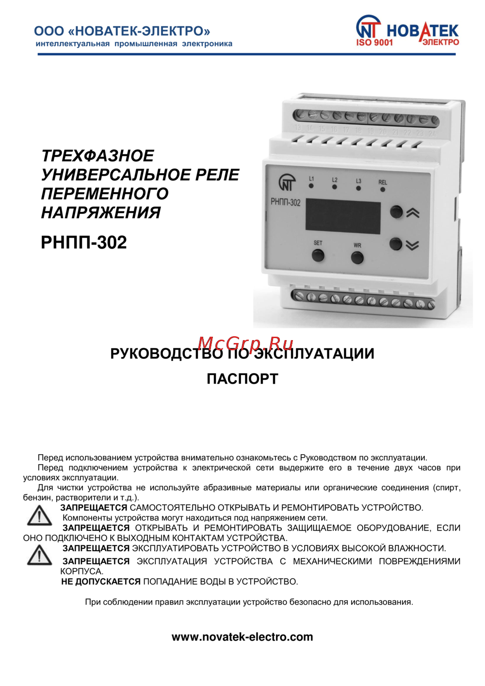 Новатек-Электро РНПП-302 — руководство по эксплуатации трехфазного реле переменного напряжения [1/8]