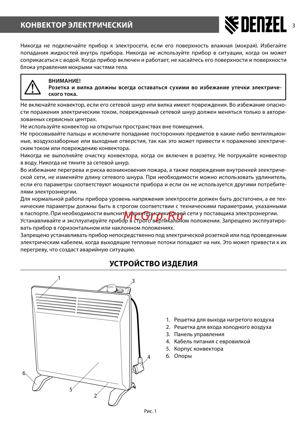 Denzel XCE-1000 — безопасное использование электрического конвектора: советы и рекомендации [5/16]