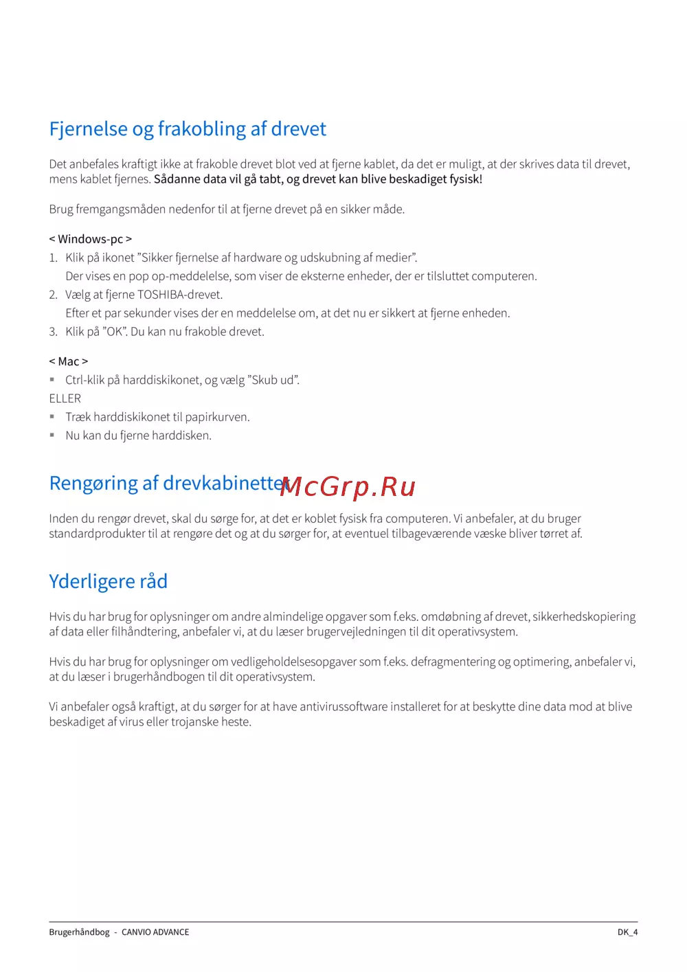 Toshiba Canvio Advance HDTCA10ER3AA [29/185] Yderligere råd