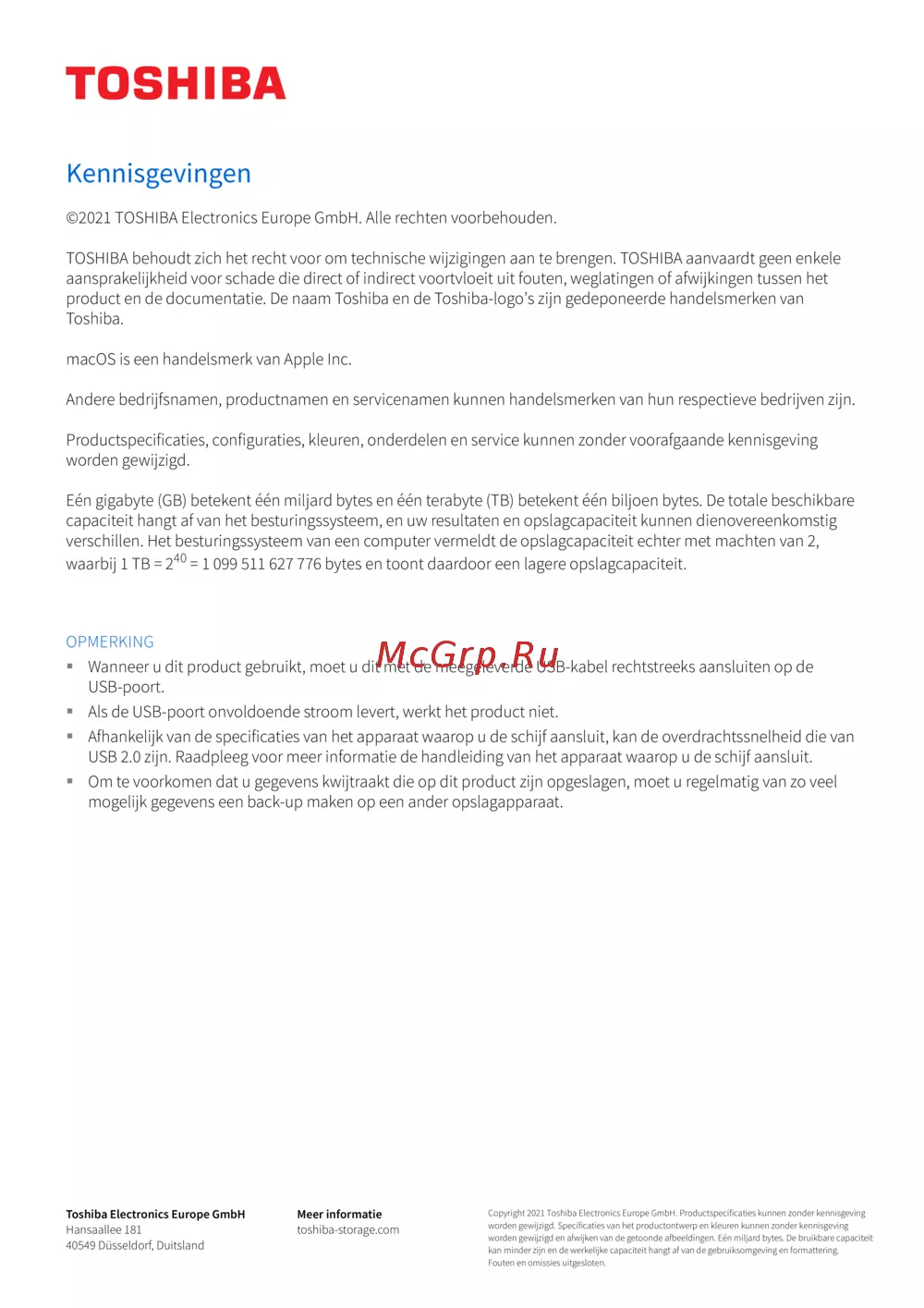 Toshiba Canvio Advance HDTCA10ER3AA [97/185] Opmerking
