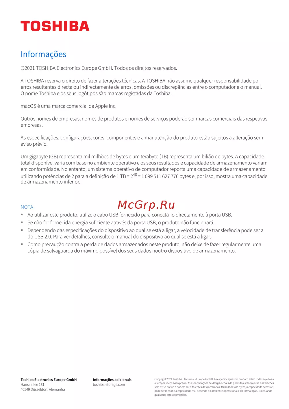 opyright 2021 Toshiba Electronics Europe GmbH. As especificações do produto estão todas sujeitas a