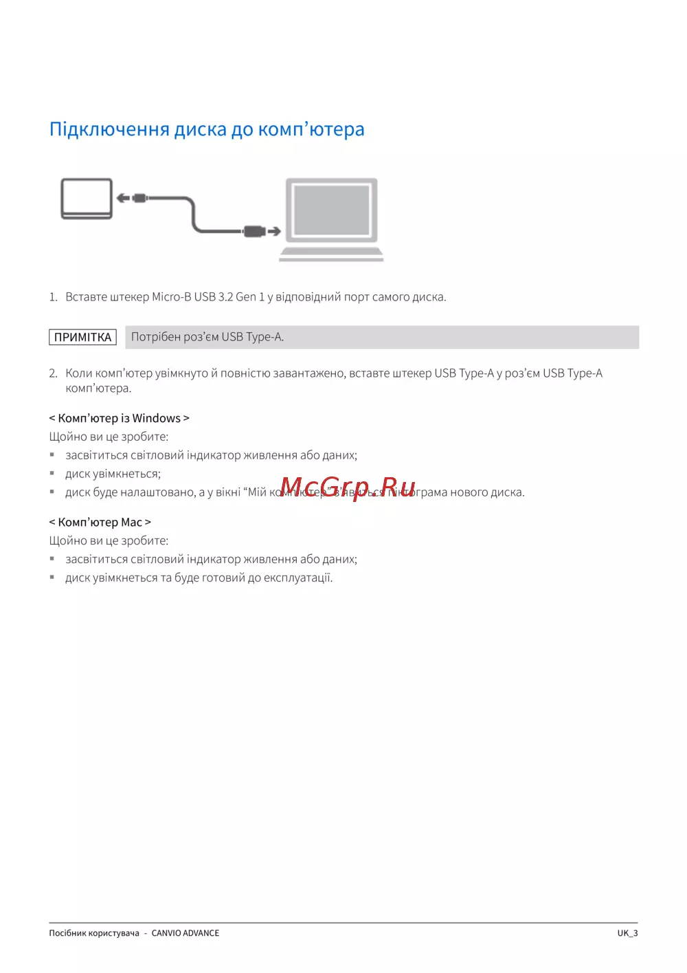Toshiba Canvio Advance HDTCA40ER3CA — посібник користувача: Підключення зовнішнього диска до комп'ютера [180/185]