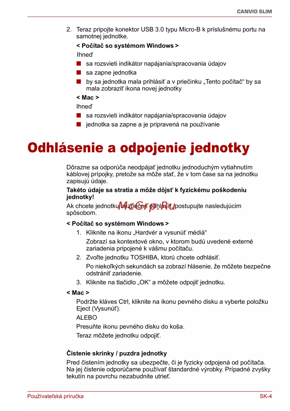 Toshiba Canvio Slim HDTD310EK3DA [169/201] Odhlásenie a odpojenie jednotky