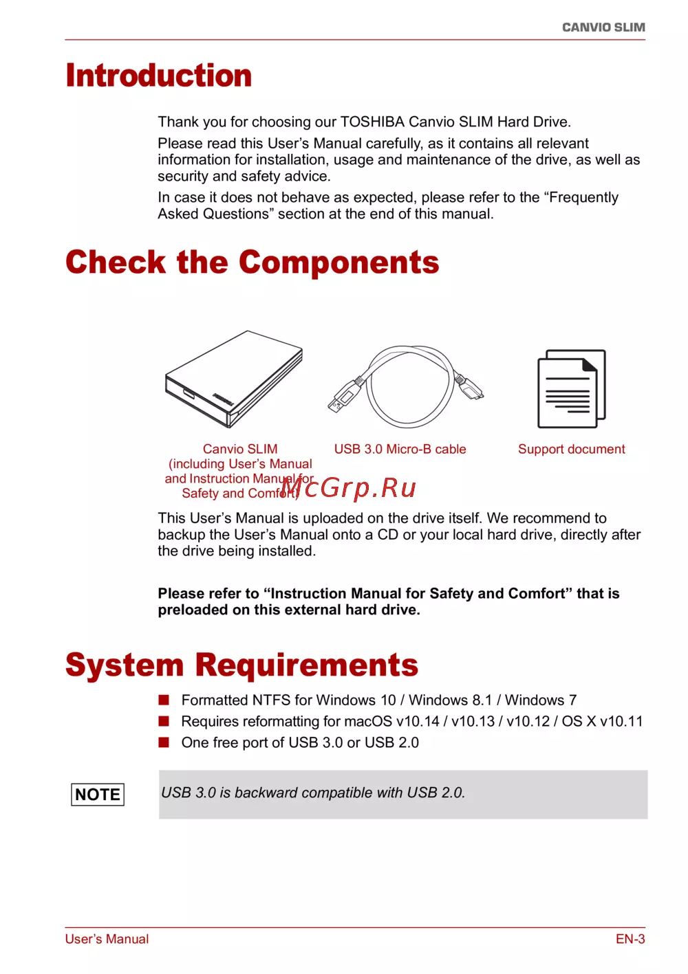 ![Toshiba Canvio Slim HDTD310EK3DA [3/201] System requirements](/views2/1884950/page3/bg3.png)