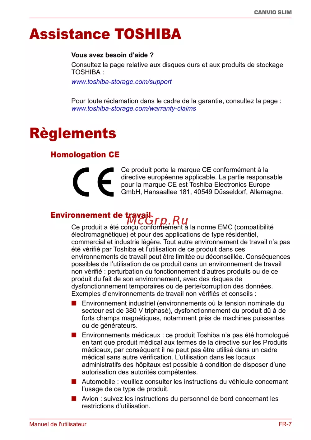 Toshiba Canvio Slim HDTD310EK3DA [62/201] Règlements
