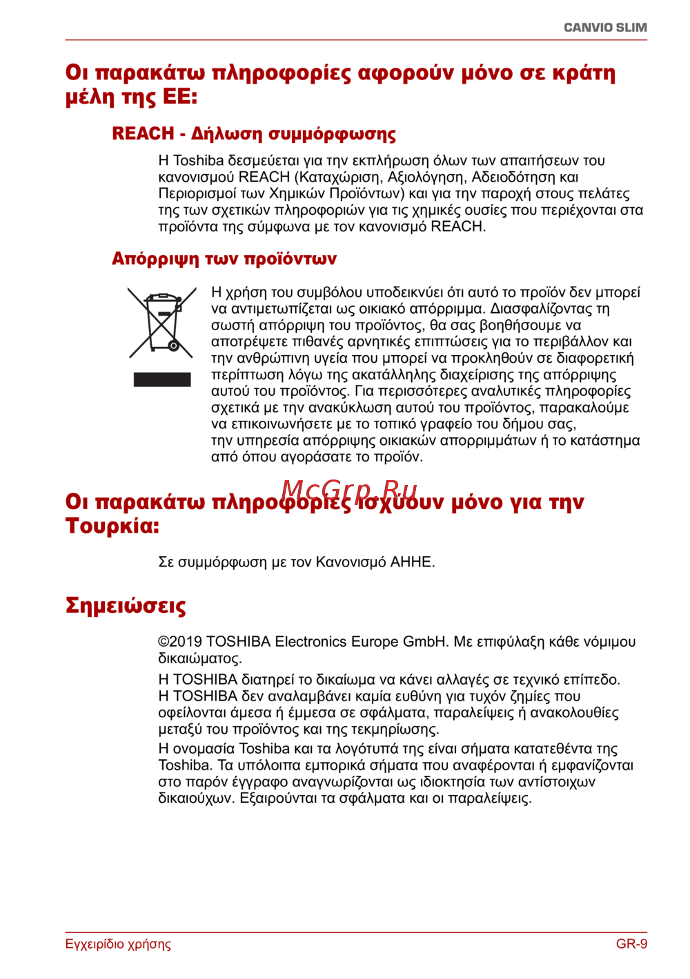 Η TOSHIBA δεν αναλαμβάνει καμία ευθύνη για τυχόν ζημίες που