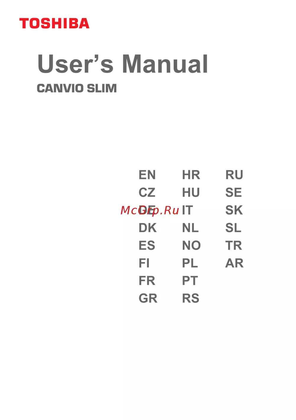Toshiba Canvio Slim HDTD320ES3EAИнструкция по эксплуатации -