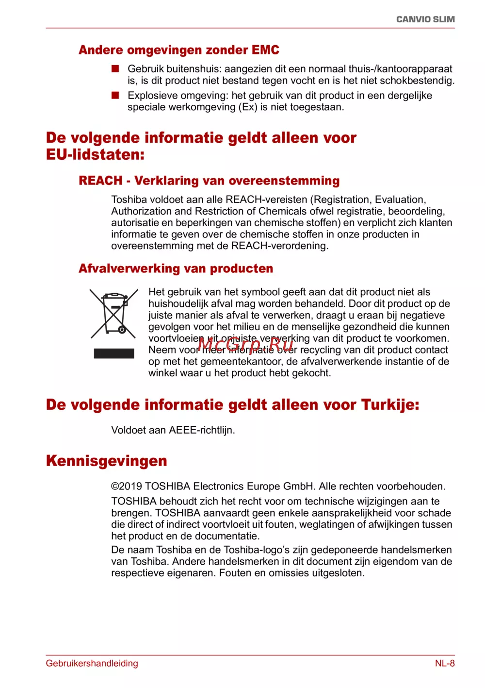 Toshiba voldoet aan alle REACH-vereisten (Registration, Evaluation,