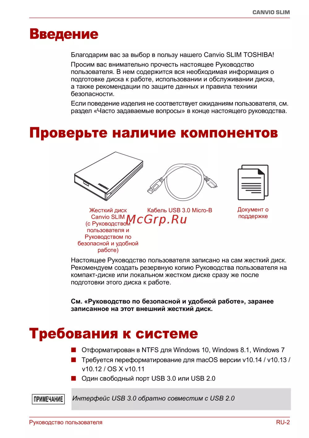Toshiba Canvio Slim HDTD310EK3DAИнструкция по эксплуатации -