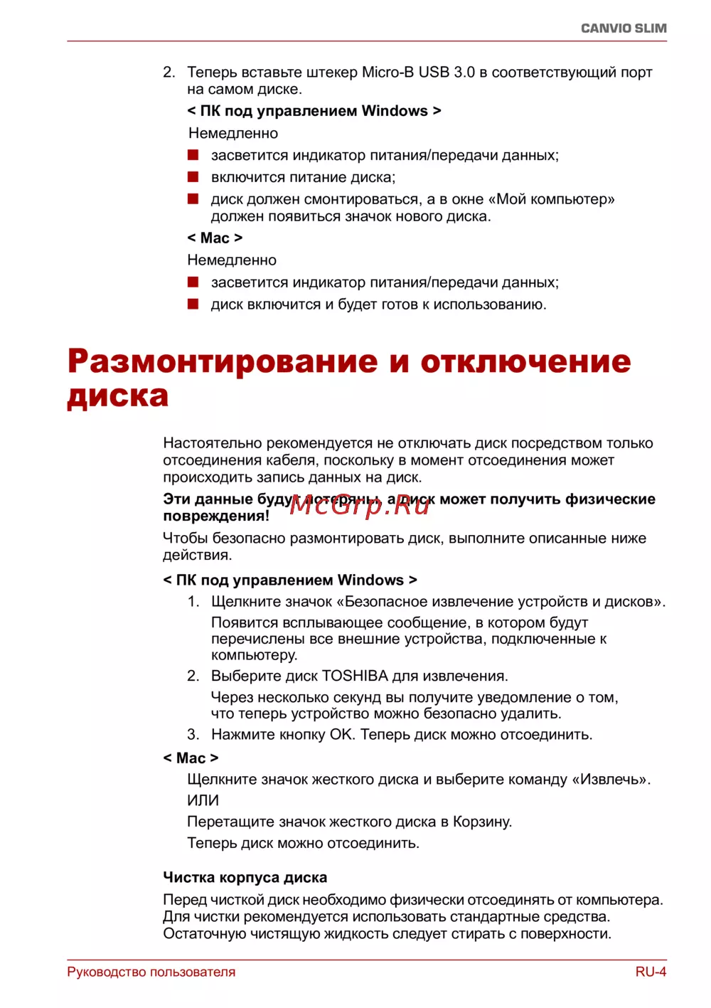 Toshiba Canvio Slim HDTD310EK3DAИнструкция по эксплуатации -
