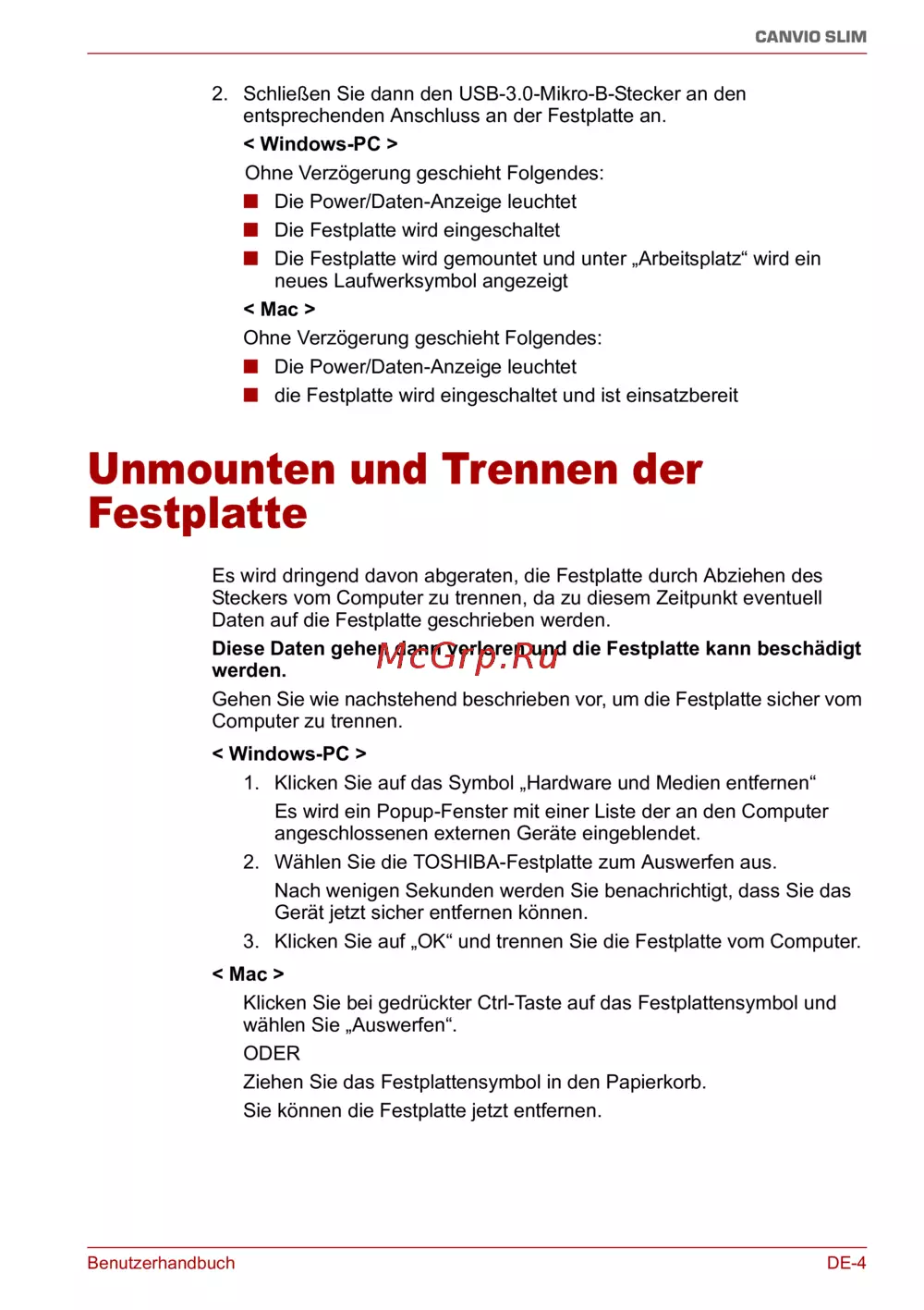 Toshiba Canvio Slim HDTD310ES3DA [23/201] Unmounten und trennen der festplatte