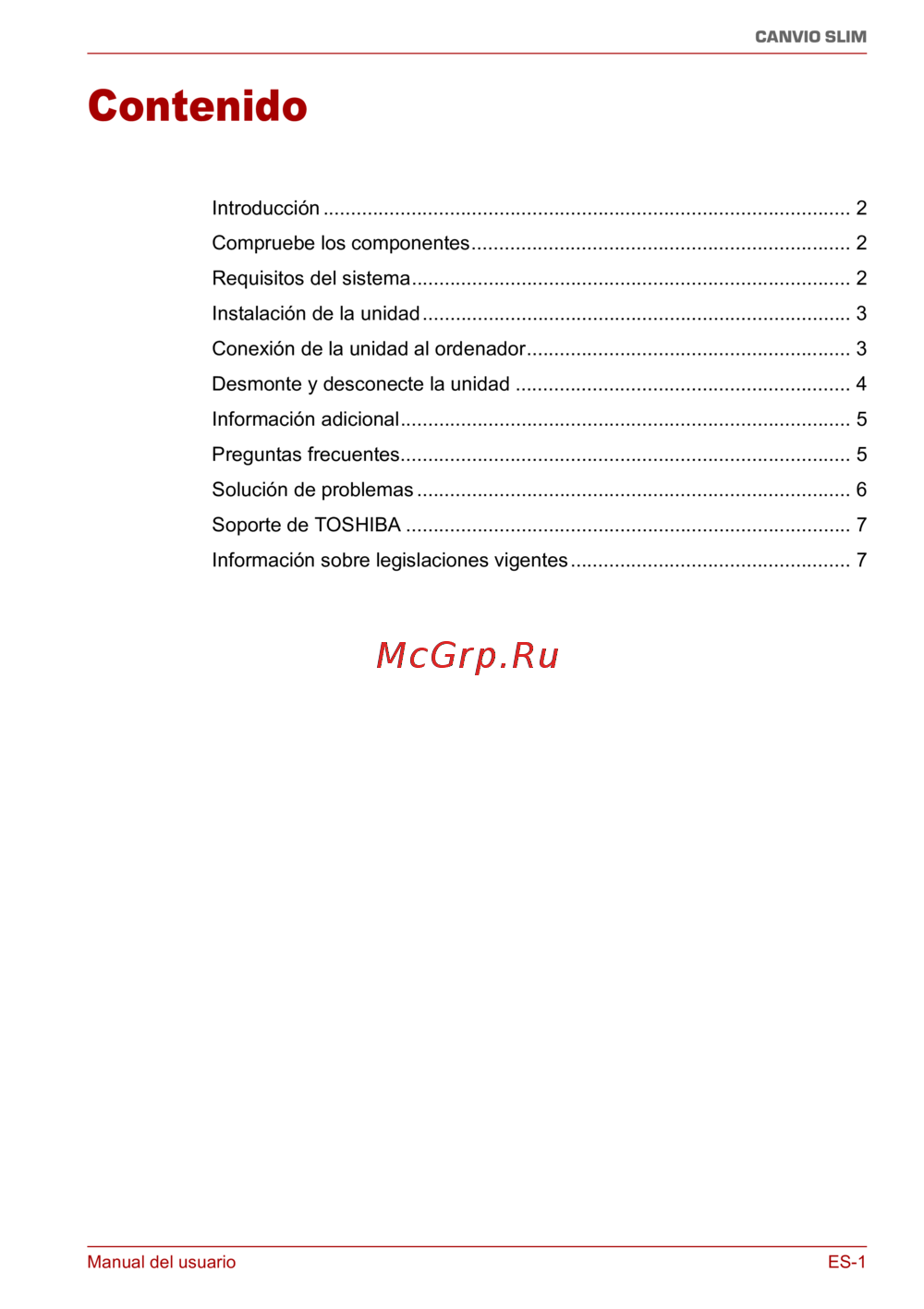 Soporte de TOSHIBA ................................................................................. 7