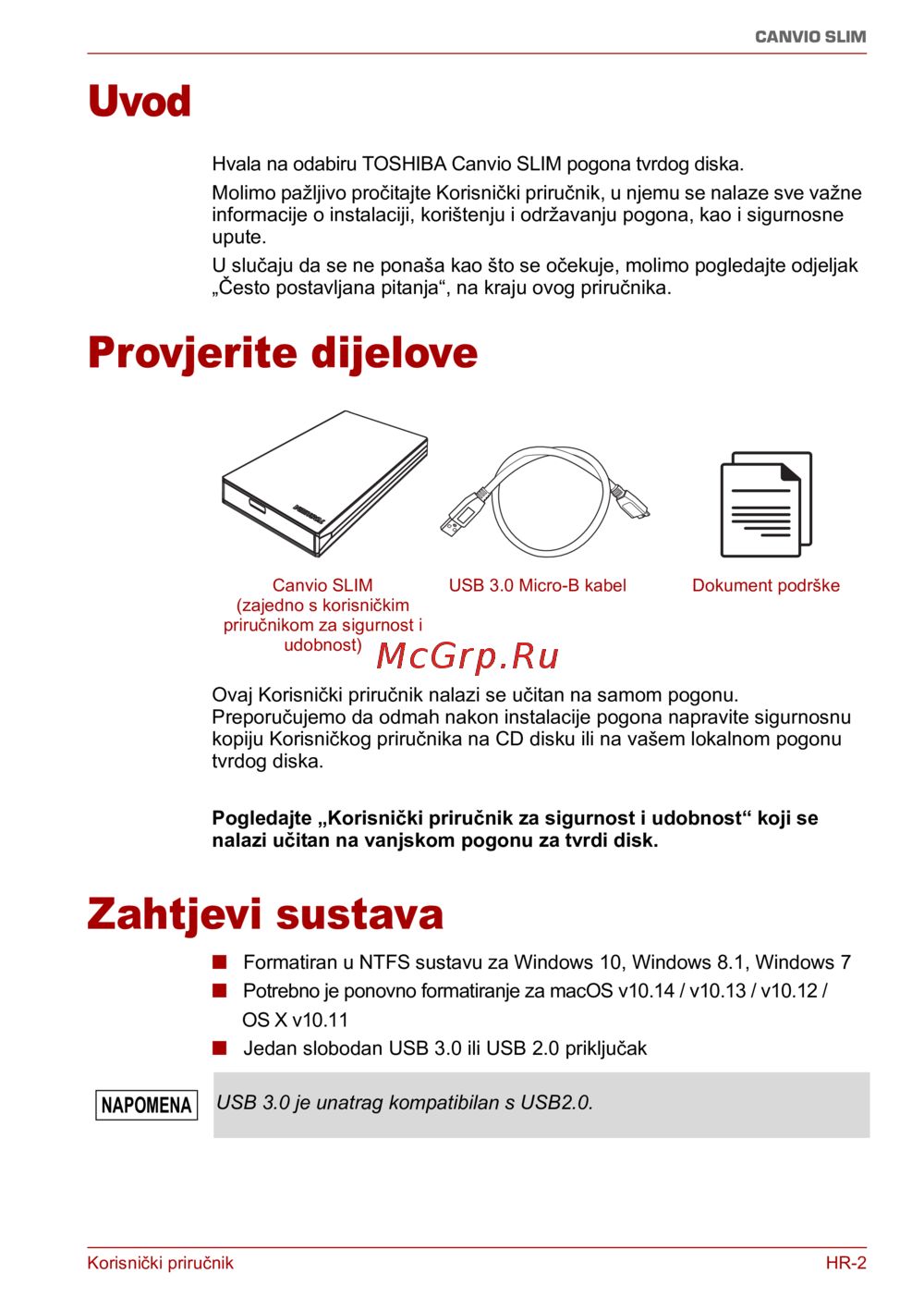 Hvala na odabiru TOSHIBA Canvio SLIM pogona tvrdog diska.