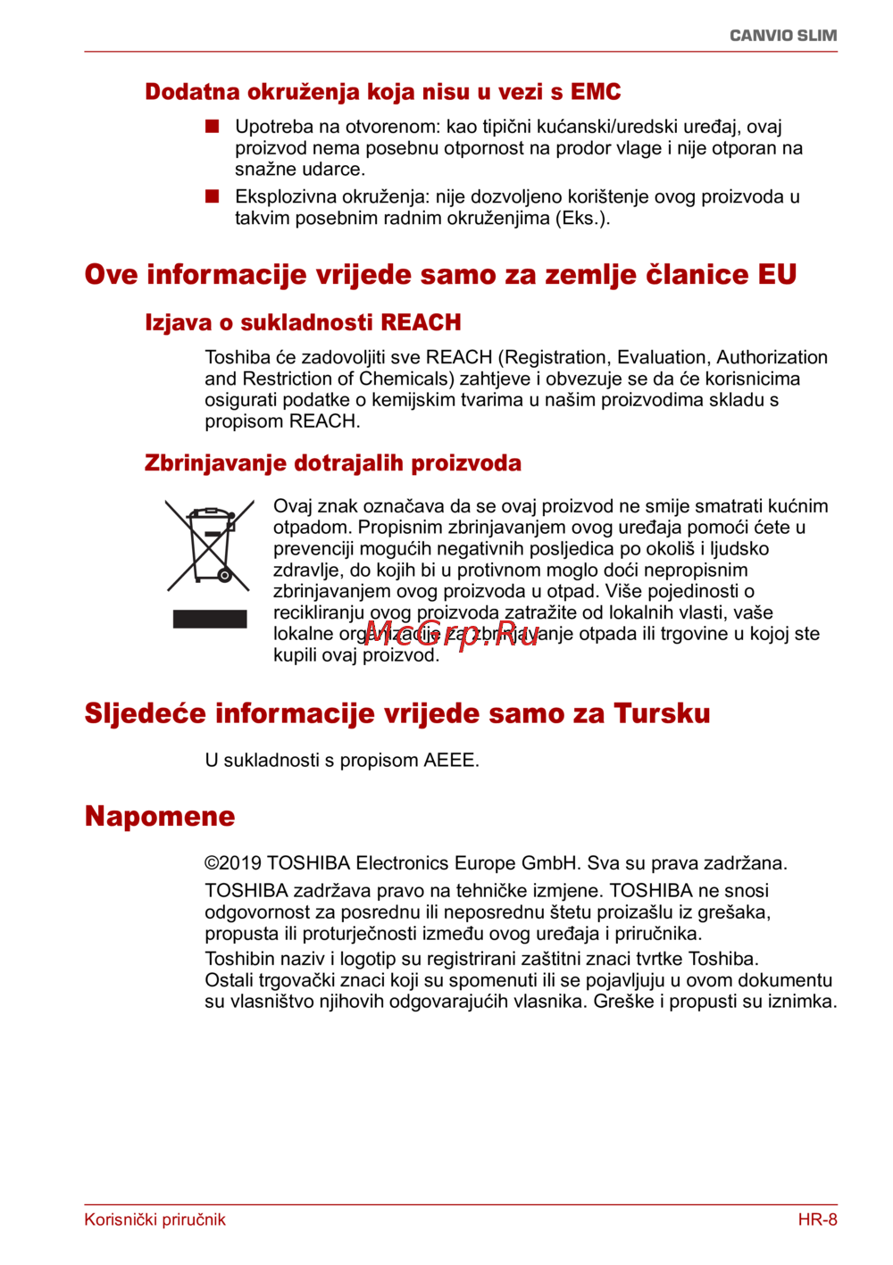 Toshiba Canvio Slim HDTD310ES3DA [82/201] Zbrinjavanje dotrajalih proizvoda