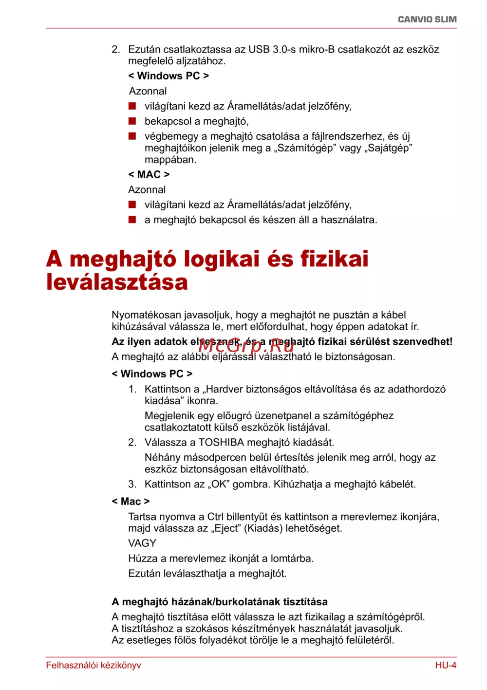 Toshiba Canvio Slim HDTD320ES3EAИнструкция по эксплуатации -
