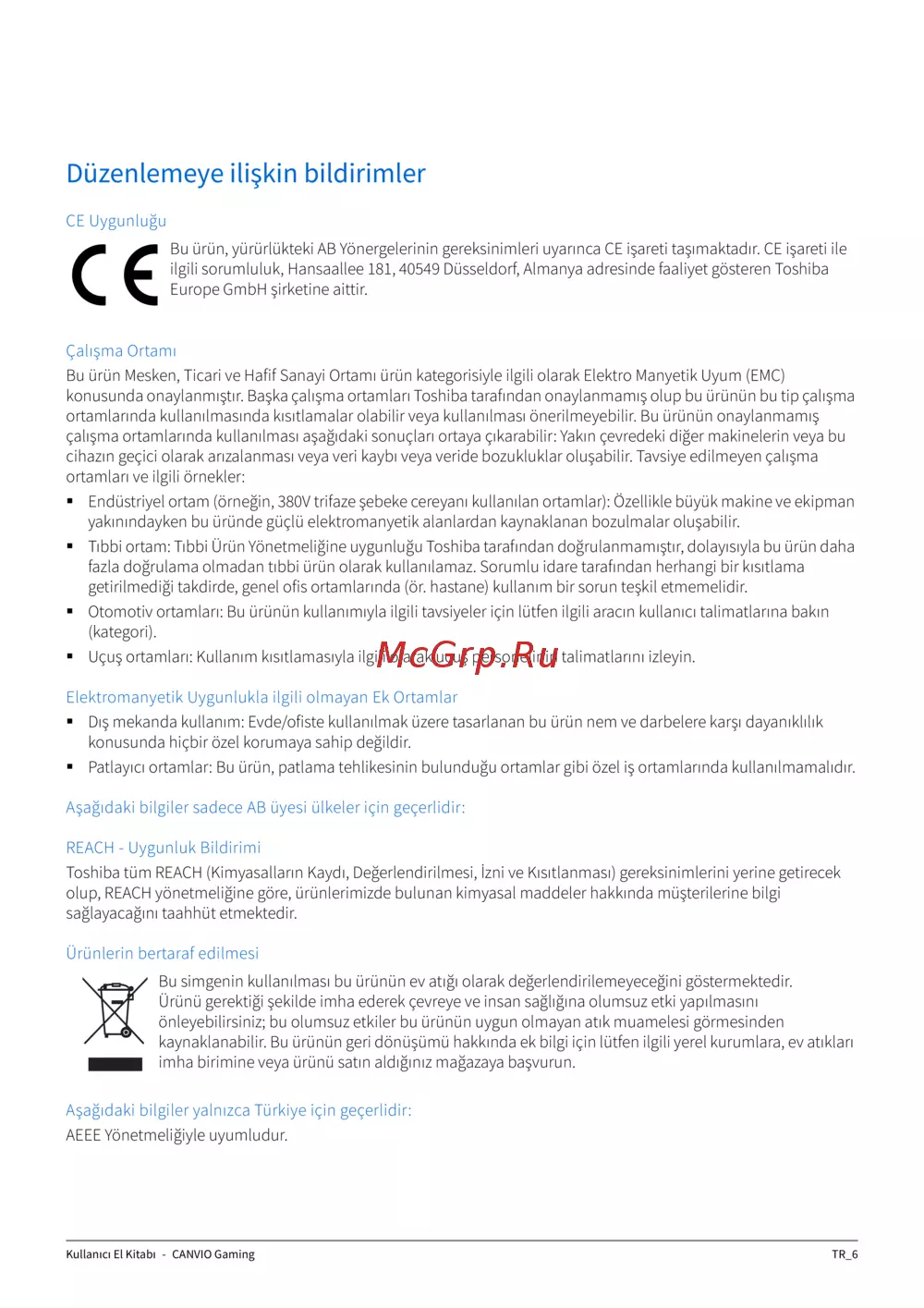 Toshiba Canvio Gaming HDTX120EK3AA [147/162] Aşağıdaki bilgiler yalnızca türkiye için geçerlidir