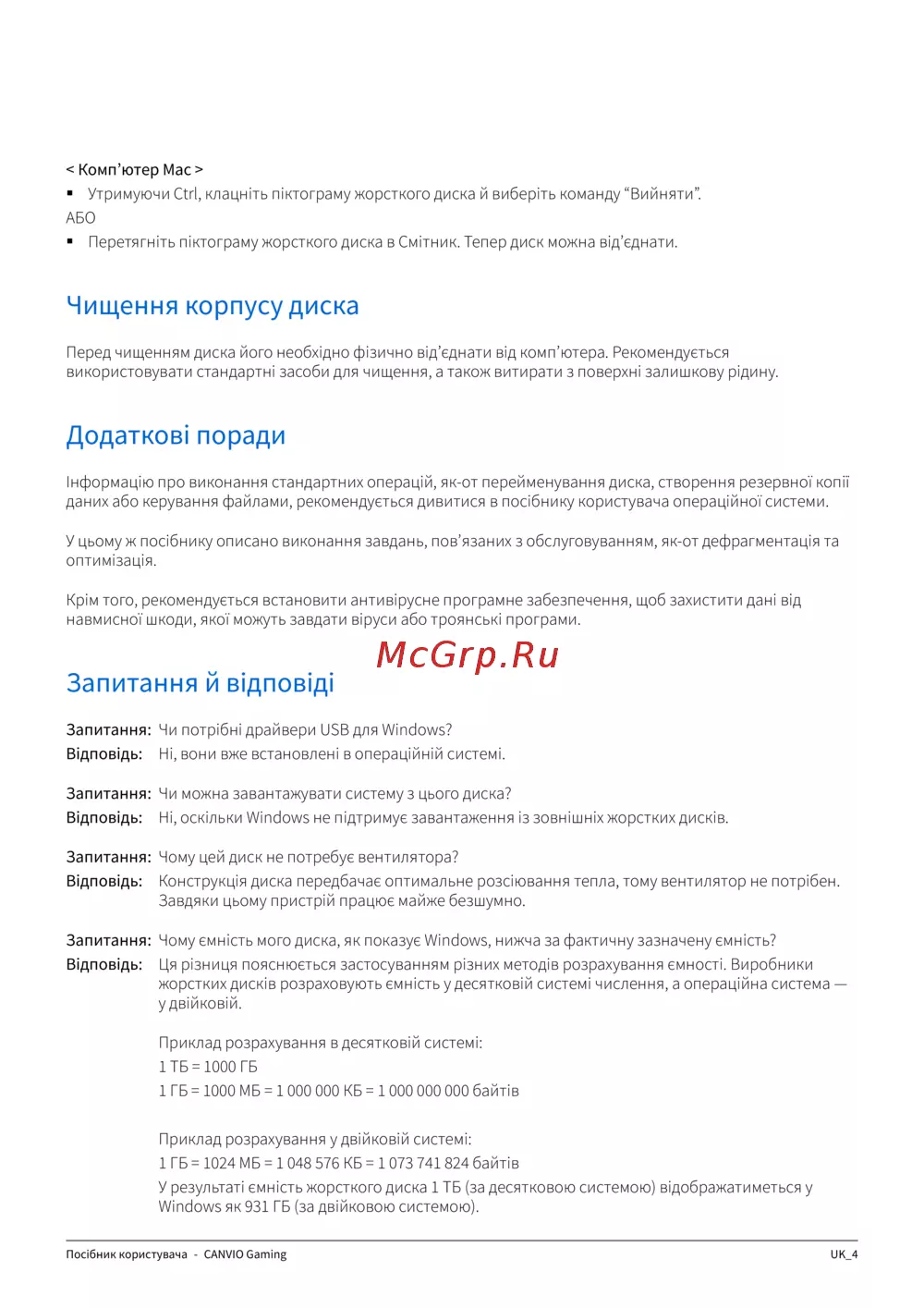 Запитання: Чому мнсть мого диска, як показу Windows, нижча за фактичну зазначену мнсть?