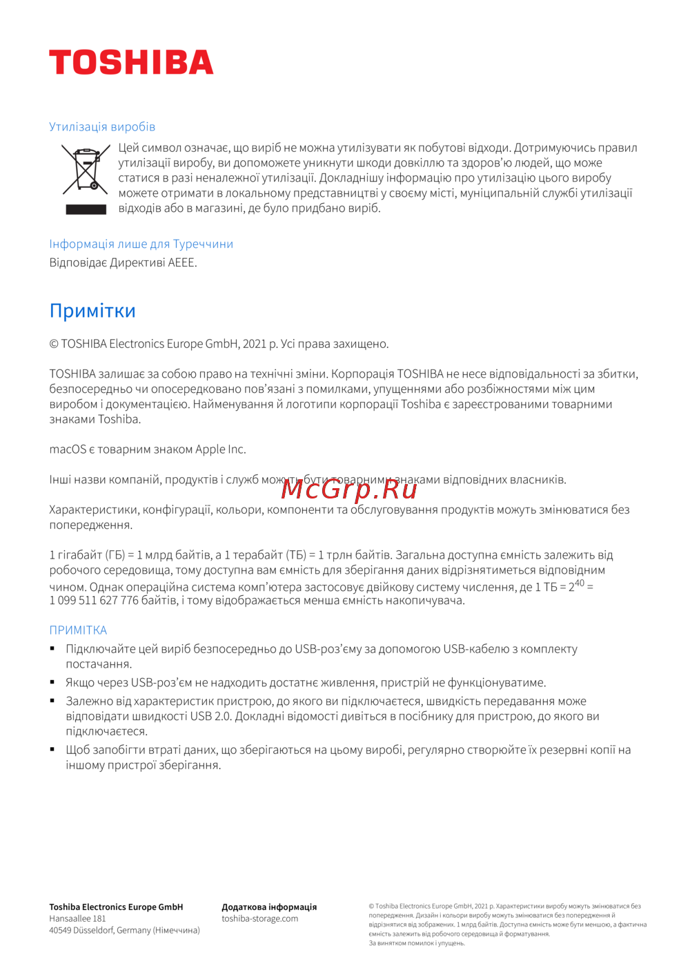 Toshiba Canvio Gaming HDTX120EK3AA [162/162] Утилізація виробів