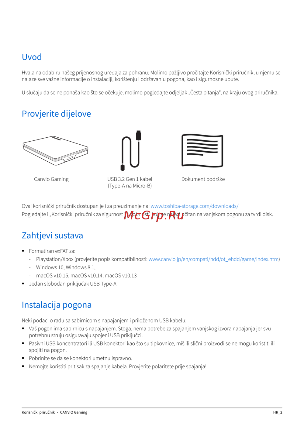 Ovaj korisnički priručnik dostupan je i za preuzimanje na: www.toshiba-storage.com/downloads/
