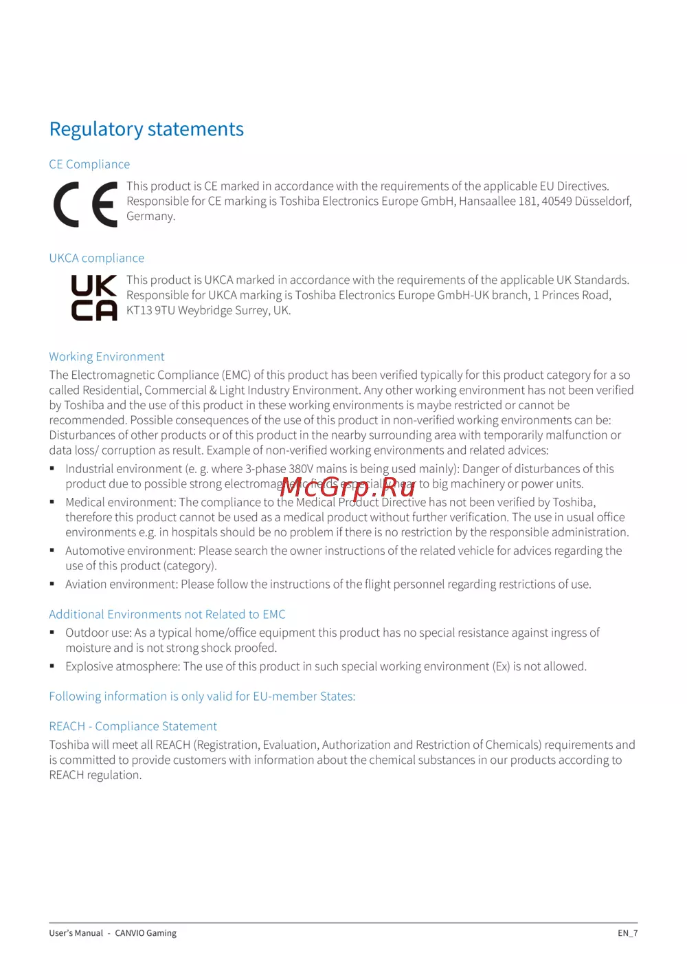 Toshiba Canvio Gaming HDTX120EK3AA [7/162] Reach compliance statement