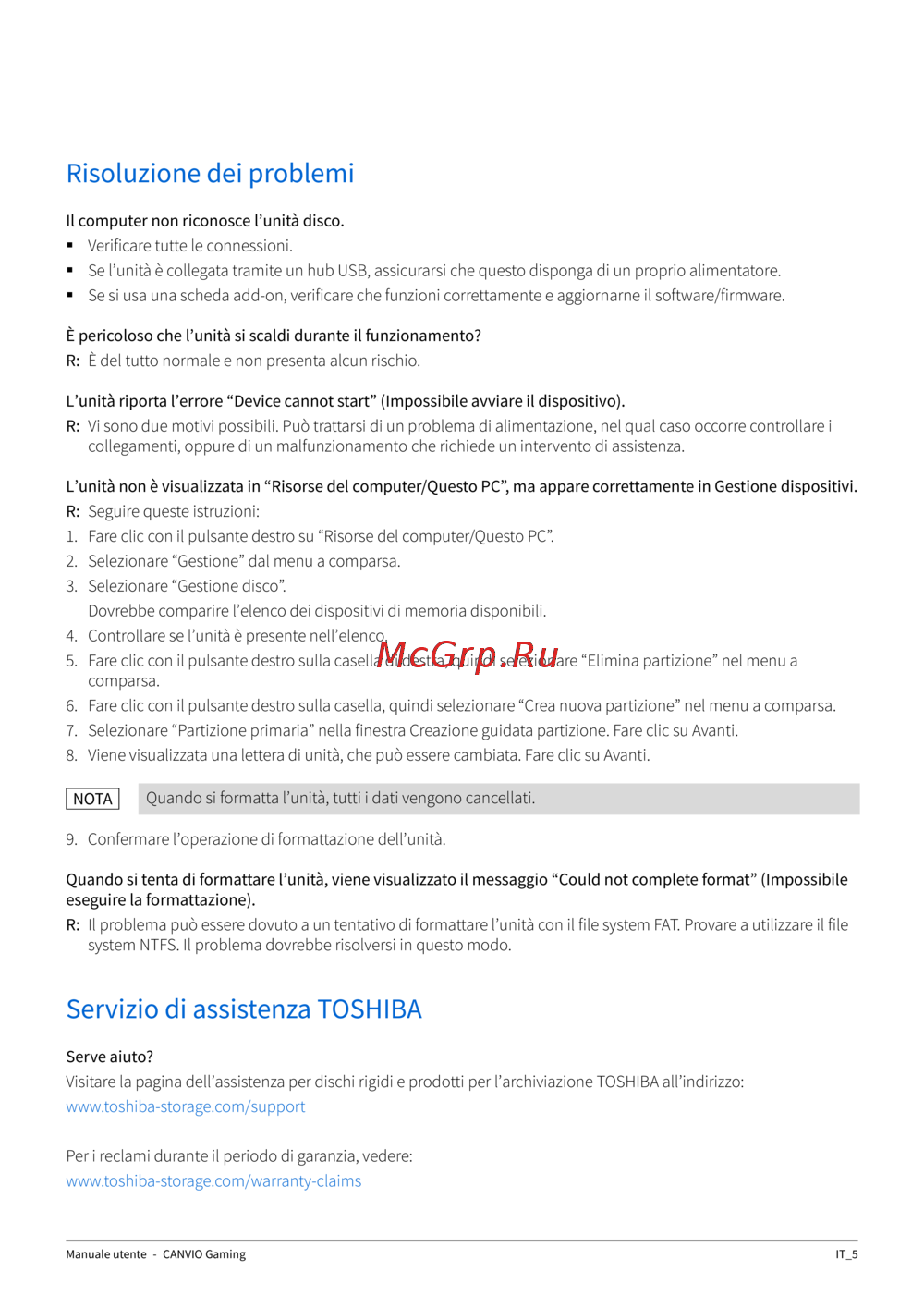 Toshiba Canvio Gaming HDTX120EK3AA [76/162] Servizio di assistenza toshiba