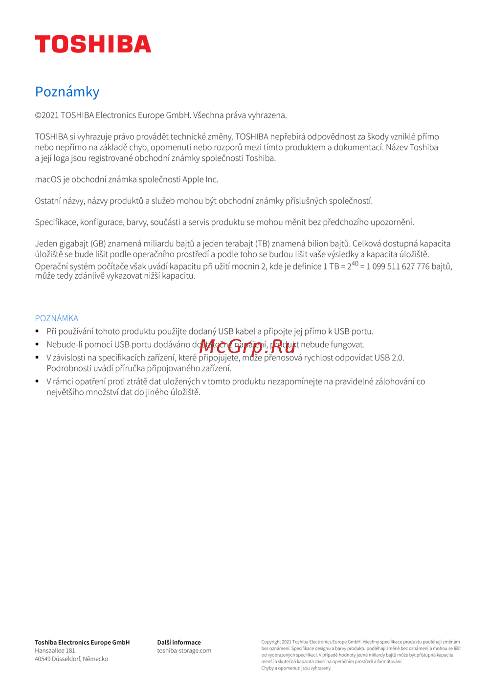 opyright 2021 Toshiba Electronics Europe GmbH. Všechny specifikace produktu podléhají změnám