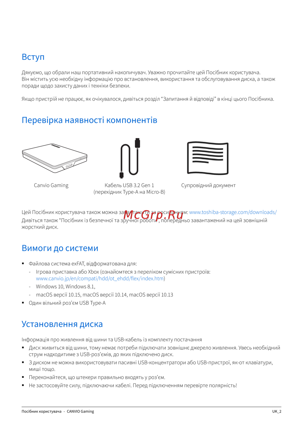 Toshiba Canvio Gaming HDTX110EK3AAИнструкция по эксплуатации -