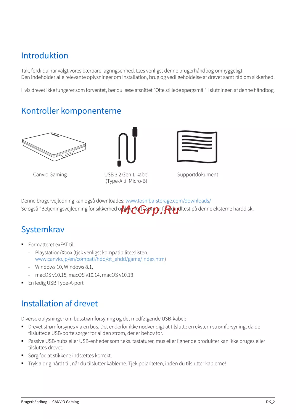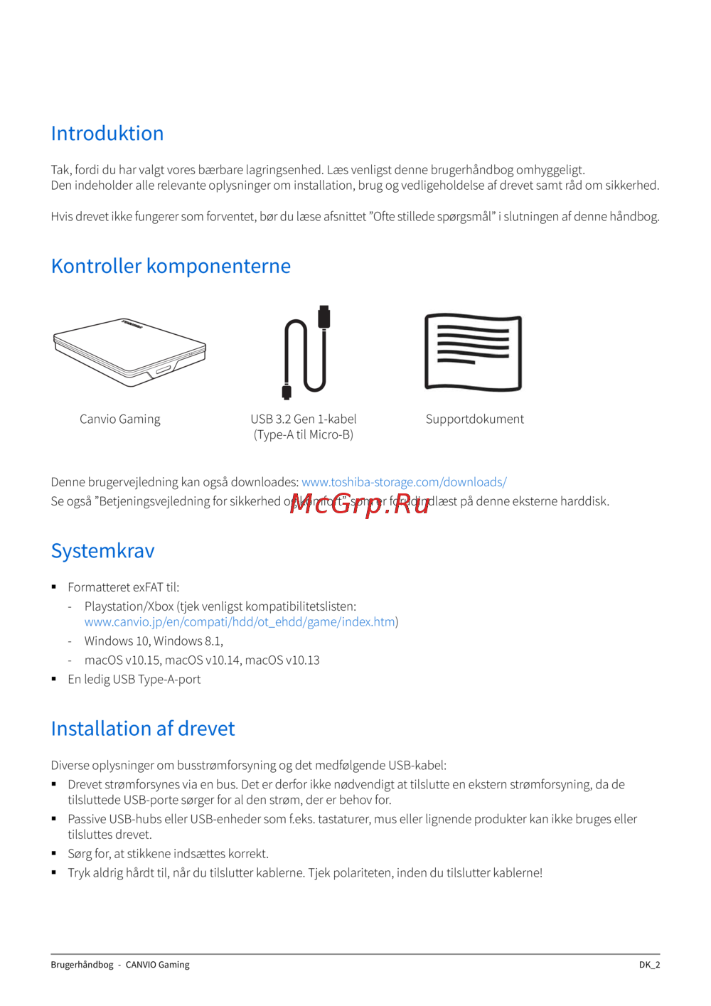 Denne brugervejledning kan også downloades: www.toshiba-storage.com/downloads/
