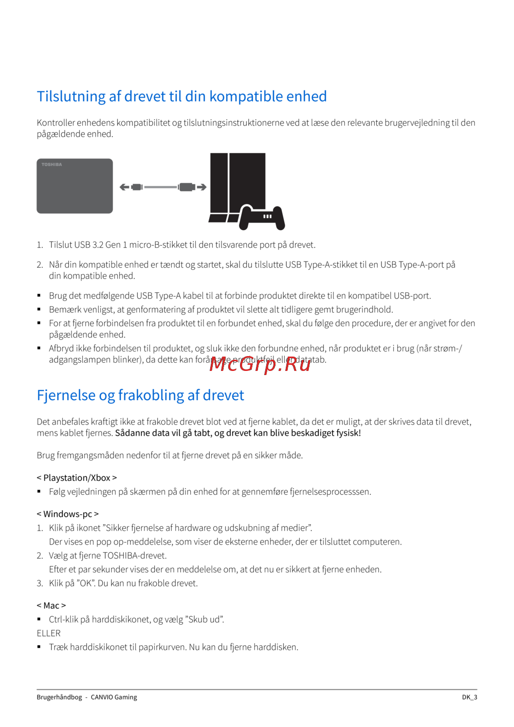 ![Toshiba Canvio Gaming HDTX140EK3CA [25/162] Tilslutning af drevet til din kompatible enhed](/views2/1884954/page25/bg19.png)