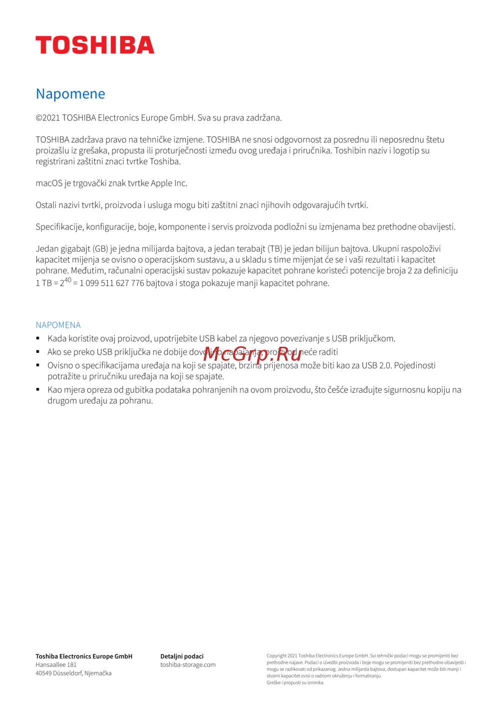 opyright 2021 Toshiba Electronics Europe GmbH. Svi tehnički podaci mogu se promijeniti bez
