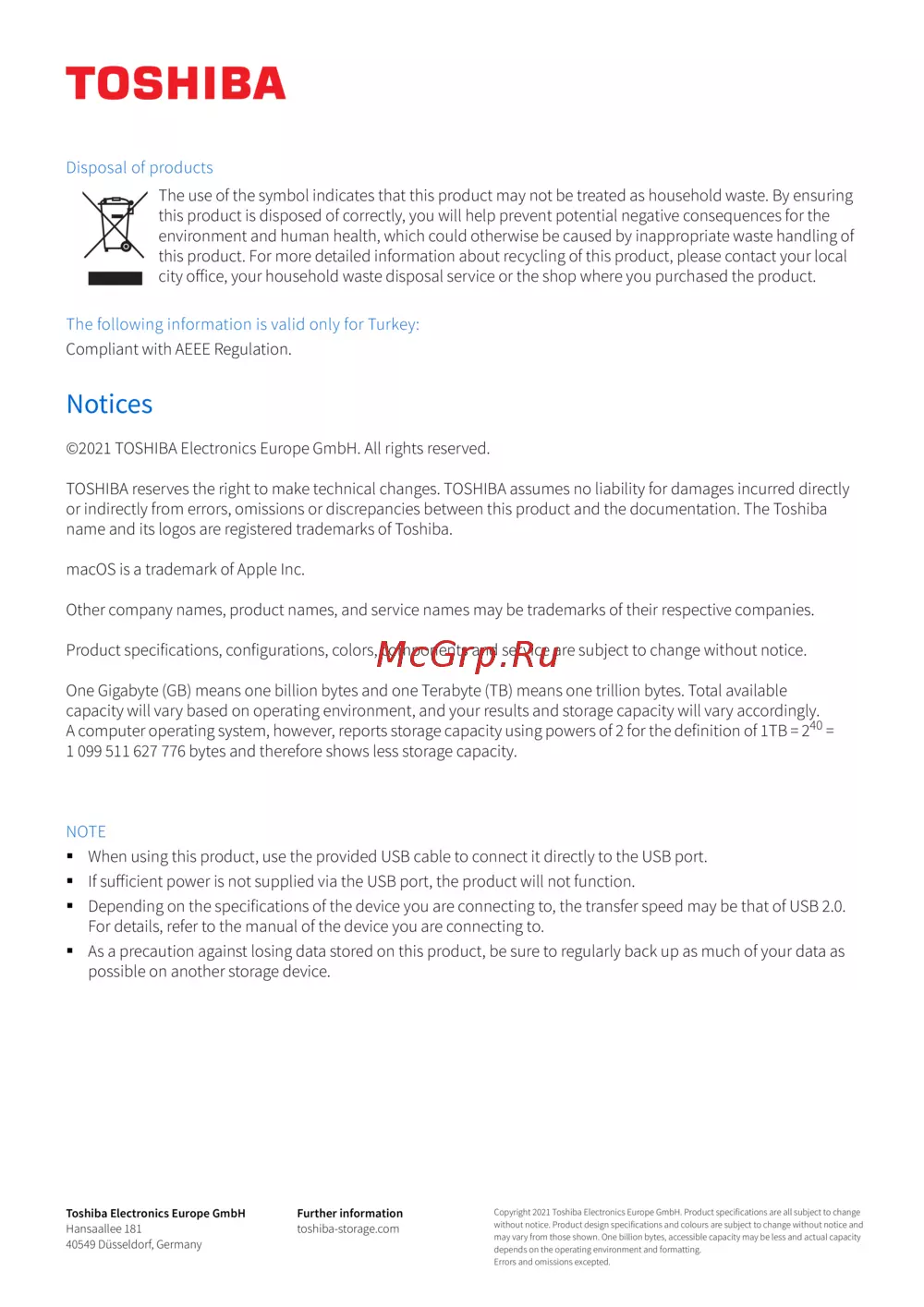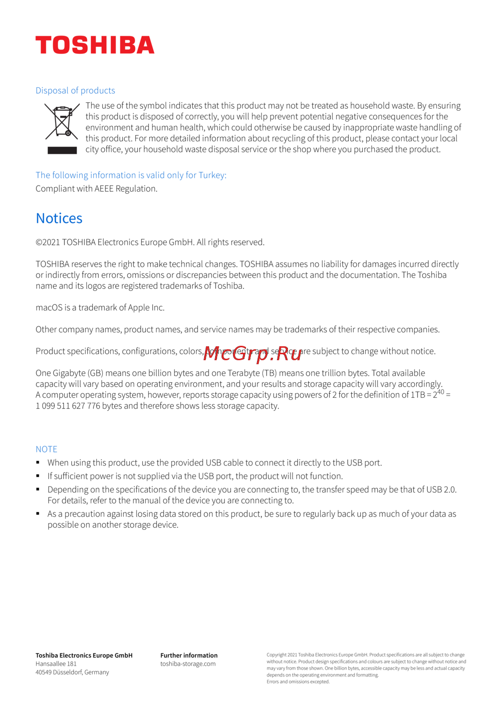 Toshiba Canvio Gaming HDTX140EK3CA [8/162] Notices