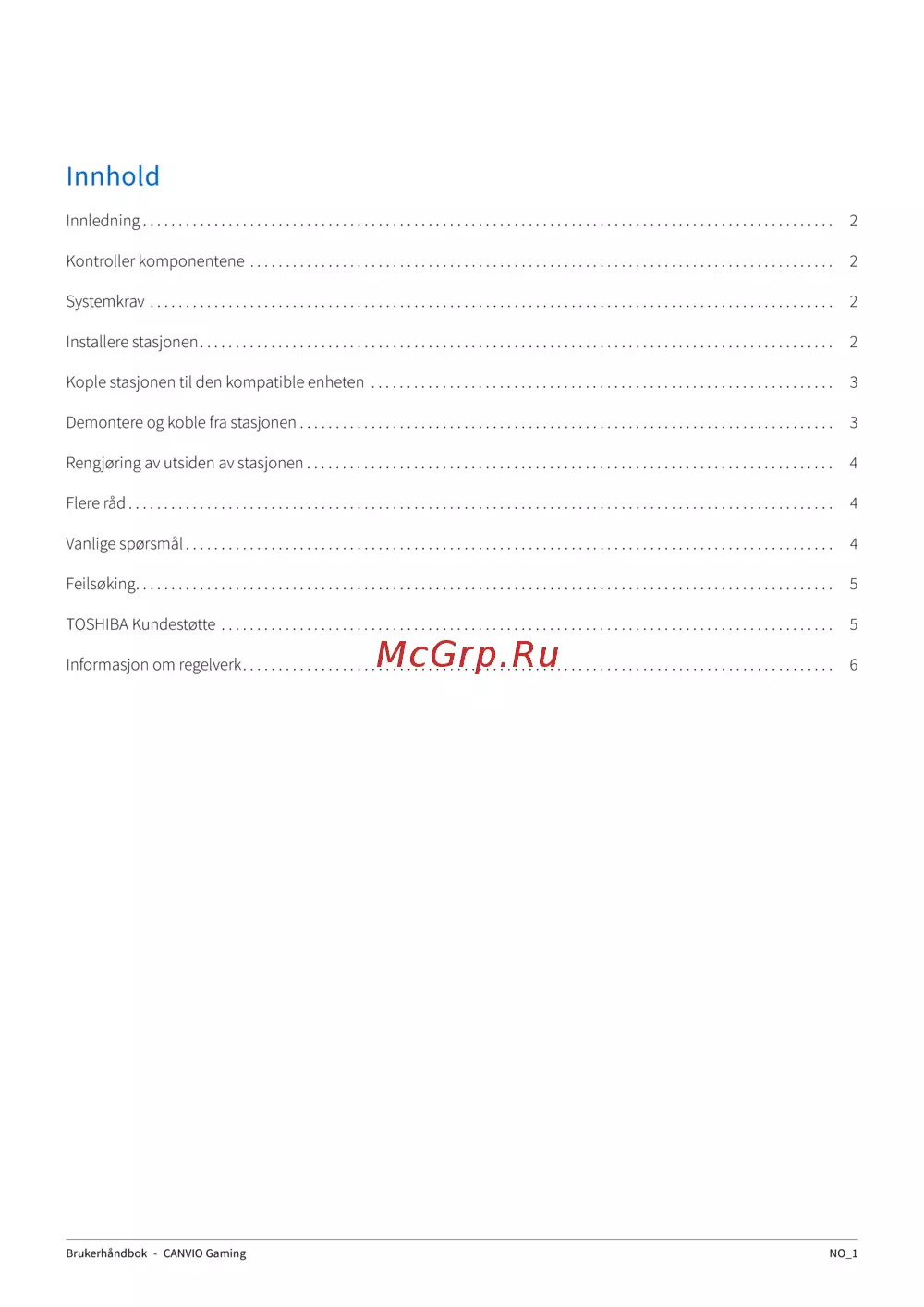 TOSHIBA Kundestøtte . . . . . . . . . . . . . . . . . . . . . . . . . . . . . . . . . . . . . . . . . . . . . . . . . . . . . . . . . . . . . . . . . . . . . . . . . . . . . . . . . . . . . . 5