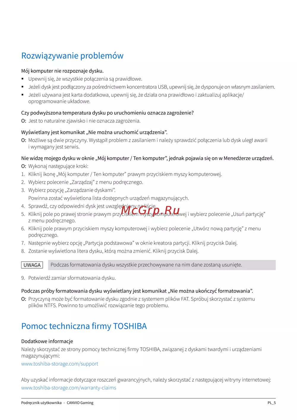 ![Toshiba Canvio Gaming HDTX140EK3CA [97/162] Rozwiązywanie problemów](/views2/1884954/page97/bg61.png)