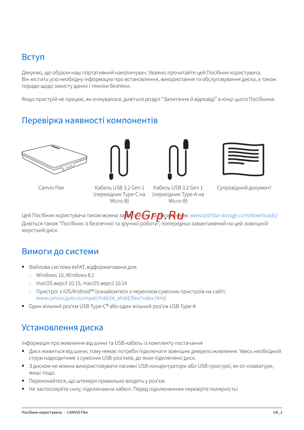 ей Посбник користувача також можна завантажити за посиланням: www.toshiba-storage.com/downloads/