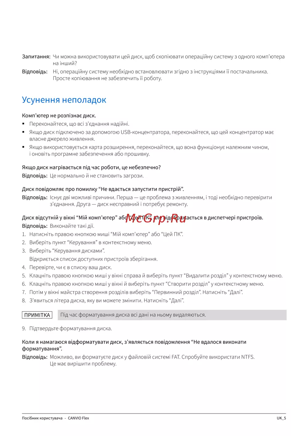 Toshiba Canvio Flex HDTX110ESCAA [160/162] Усунення неполадок