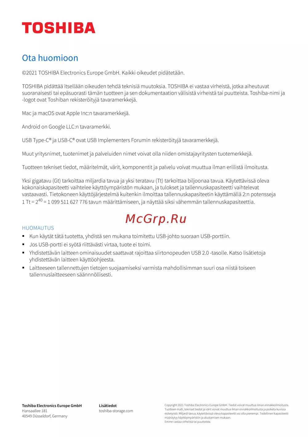 Toshiba Canvio Flex HDTX120ESCAAИнструкция по эксплуатации -