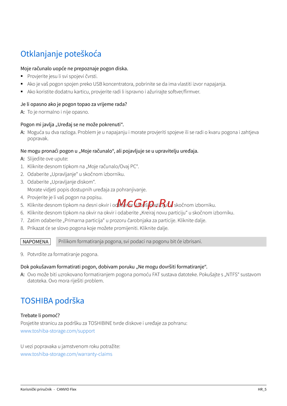 Toshiba Canvio Flex HDTX110ESCAA [62/162] Toshiba podrška