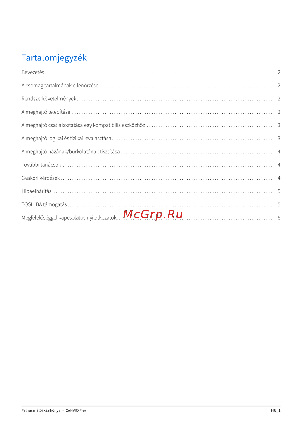 TOSHIBA támogatás . . . . . . . . . . . . . . . . . . . . . . . . . . . . . . . . . . . . . . . . . . . . . . . . . . . . . . . . . . . . . . . . . . . . . . . . . . . . . . . . . . . . . . . . 5