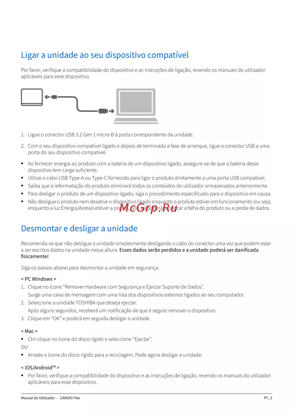 Toshiba Canvio Flex HDTX140ESCCA [102/162] Ligar a unidade ao seu dispositivo compatível