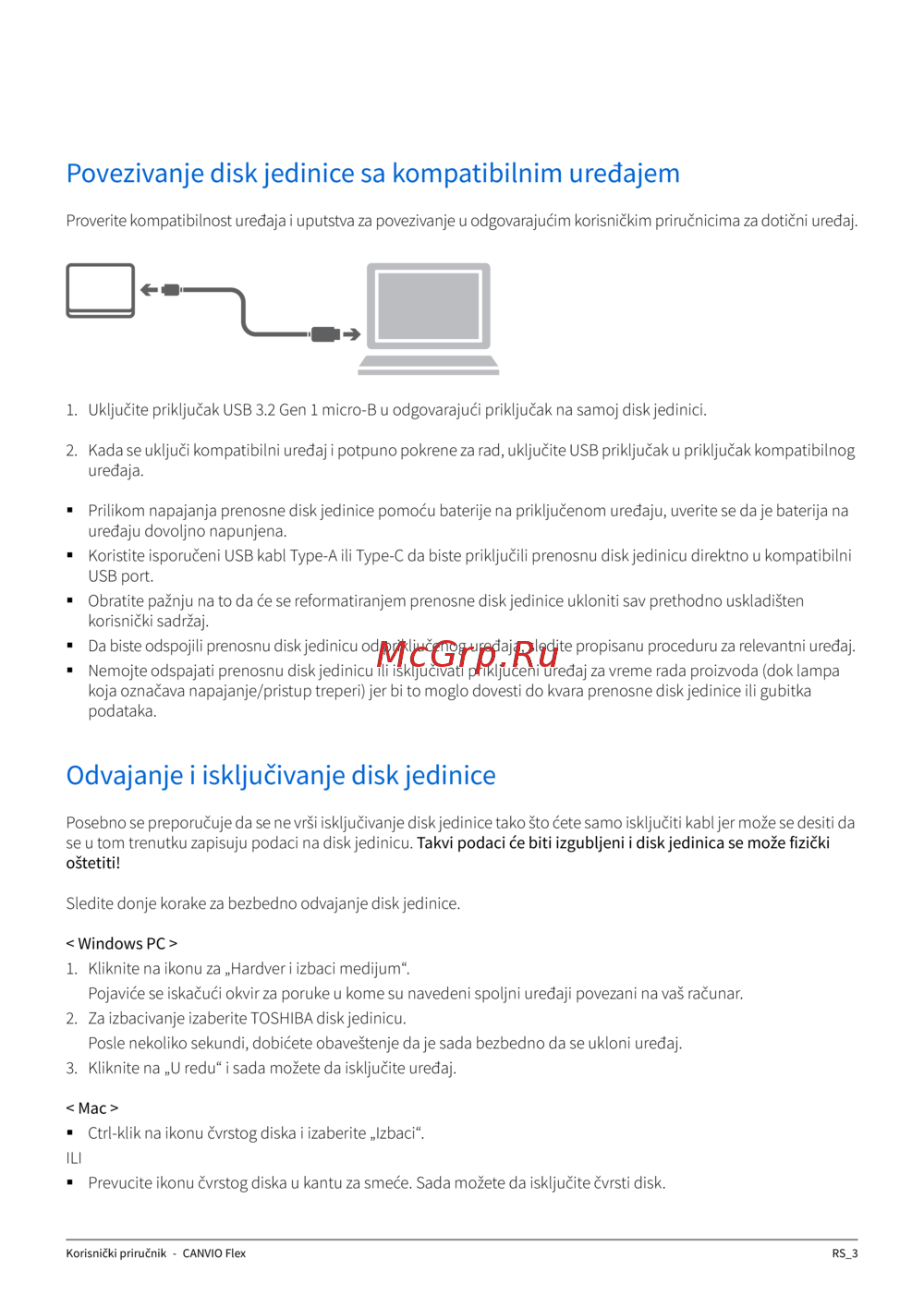 ![Toshiba Canvio Flex HDTX140ESCCA [109/162] Povezivanje disk jedinice sa kompatibilnim uređajem](/views2/1884957/page109/bg6d.png)