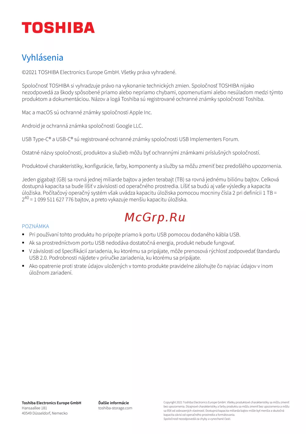 opyright 2021 Toshiba Electronics Europe GmbH. Všetky produktové charakteristiky sa môžu zmeniť