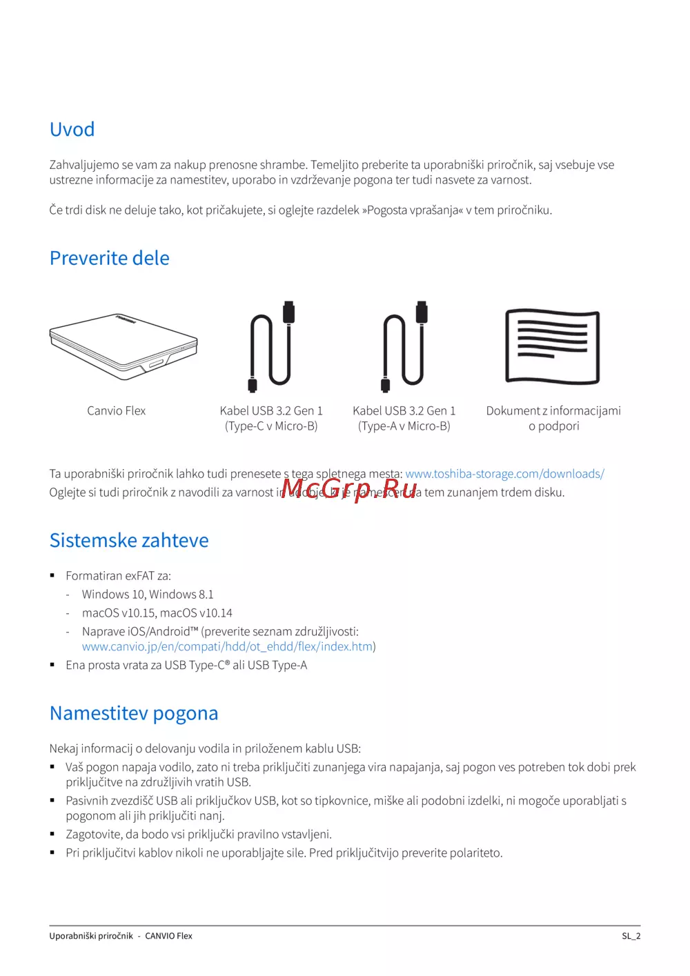 Ta uporabniški priročnik lahko tudi prenesete s tega spletnega mesta: www.toshiba-storage.com/downloads/