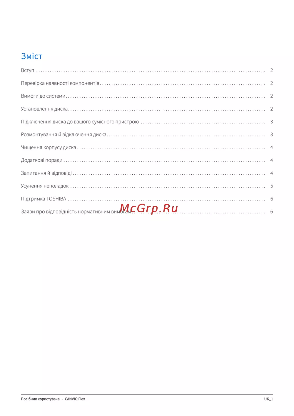 Підтримка TOSHIBA . . . . . . . . . . . . . . . . . . . . . . . . . . . . . . . . . . . . . . . . . . . . . . . . . . . . . . . . . . . . . . . . . . . . . . . . . . . . . . . . . . . . . . . 6