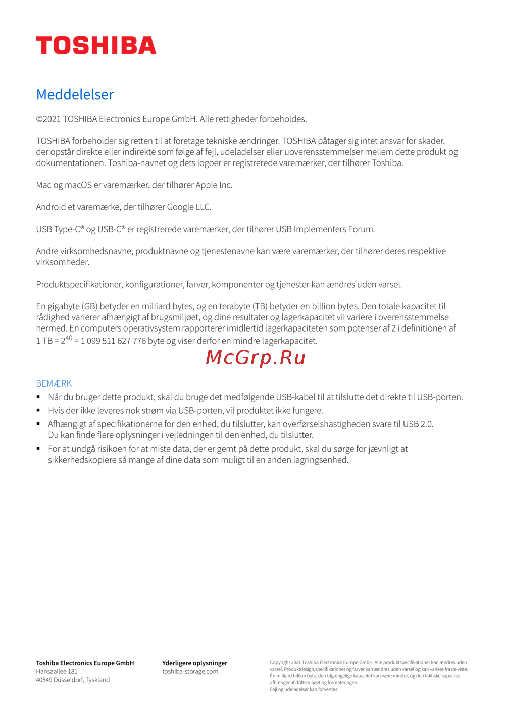 opyright 2021 Toshiba Electronics Europe GmbH. Alle produktspecifikationer kan ændres uden